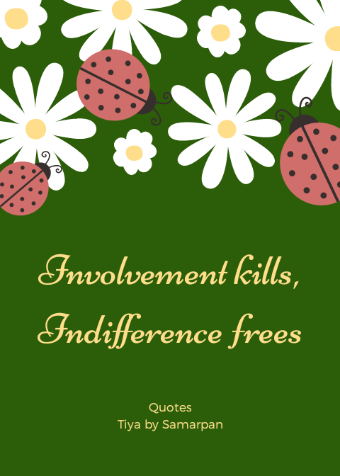 I am talking about freedom in life. Yes, involvement kills.
