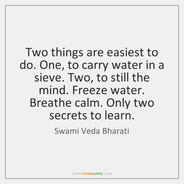 "Two things are easiest to do. One, to carry water in a sieve. two, to still the mind. Freeze water, Breathe Calm. Only two secrets to Learn"
