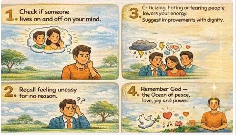 3. Criticizing, hating or fearing people lowers your energy. Suppose your office colleague is not performing well. Suggest improvements to them with dignity. After that don’t think negatively when you think of them or meet them.